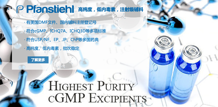 “熱烈祝賀Pfanstiehl的注射級甘氨酸Glycine(G-140)喜獲CDE登記號F20250000403, 這是Pfanstiehl產品獲得的第18個CDE登記號!”甘氨酸在醫藥輔料制劑中應用廣泛,, 可作為緩沖劑,增溶劑,穩定劑等,具有諸多優勢。Pfanstiehl秉承一貫高品質理念,為滿足全球生物制藥行業對于高品質甘氨酸的需求,隆重推出的注射級甘氨酸Glycine (G-140), 具有超高純度,超低內毒素,超低金屬殘留的特點,單獨檢測29種金屬離子,并且新增DNA,RNA,DNA酶,RNA酶和脂肪酶,亞硝酸鹽等多項質量指標的檢測,符合多國藥典規定(USP, EP, BP, JPE, ChP),可用于生物治療性藥物和疫苗的生產。產品信息:· 產品名稱:Glycine, High Purity, Low Endotoxin, Low Metals, USP, EP, BP, JPE, ChP (G-140)· 中文名稱:甘氨酸· 分子式:C2H5NO2· 分子量:75.07 g / mol· CAS號:56-40-6· 產品貨號:G-140產品特點: · 超高純度,超低內毒素,超低微生物含量,超低金屬雜質殘留· 質量指標新增DNA,RNA,DNA酶,RNA酶,脂肪酶和亞硝酸鹽檢測· 符合多國藥典:USP, EP, BP, JPE, ChP· 符合ICH Q3D標準· 符合GMP標準· 已獲DMF和CDE登記號 產品應用:· 緩沖劑· 穩定劑· 增溶劑如果您對Pfanstiehl注射級別Glycine G-140感興趣,歡迎聯系Pfanstiehl 中國區代理商北京西美杰科技有限公司獲得如下詳細的產品概況說明文件和測試樣品。Pfanstiehl Inc.最新產品系列如下,歡迎聯系北京西美杰科技有限公司獲取100g裝免費樣品。北京西美杰科技有限公司為Pfanstiehl中國代理,為客戶提供完善的技術支持與售后服務。歡迎撥打西美杰客服電話400-050-4006或者登陸網站www_xmjsci_com.104co.com了解更多信息。 更多>